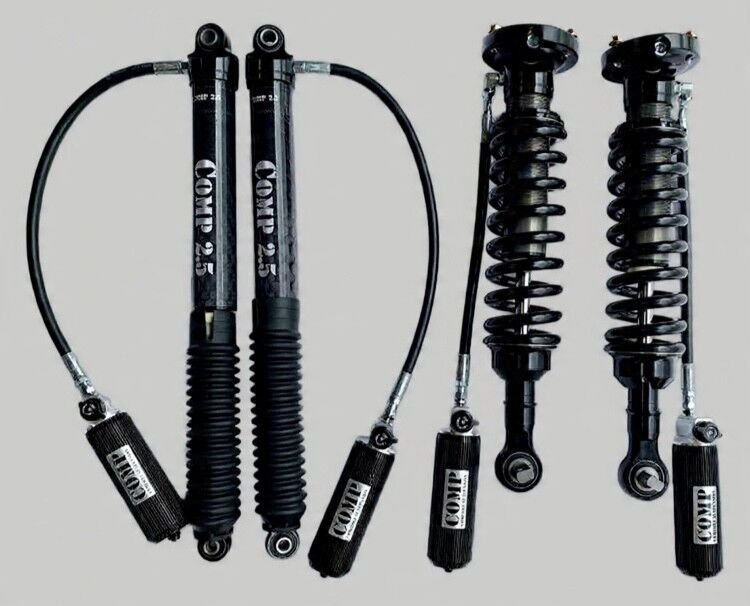 Front stuts and rear shock to suit Ford Ranger super duty. Comp Shocks 2.5 diameter remote reservoir, assembled front struts , rear shocks